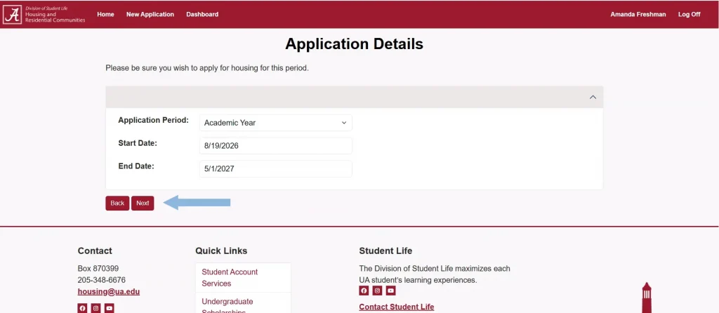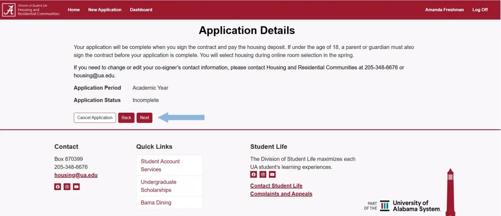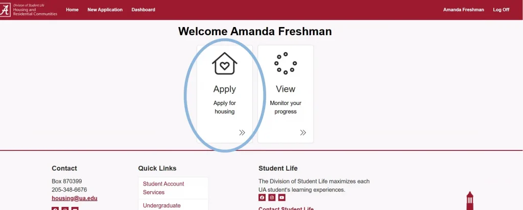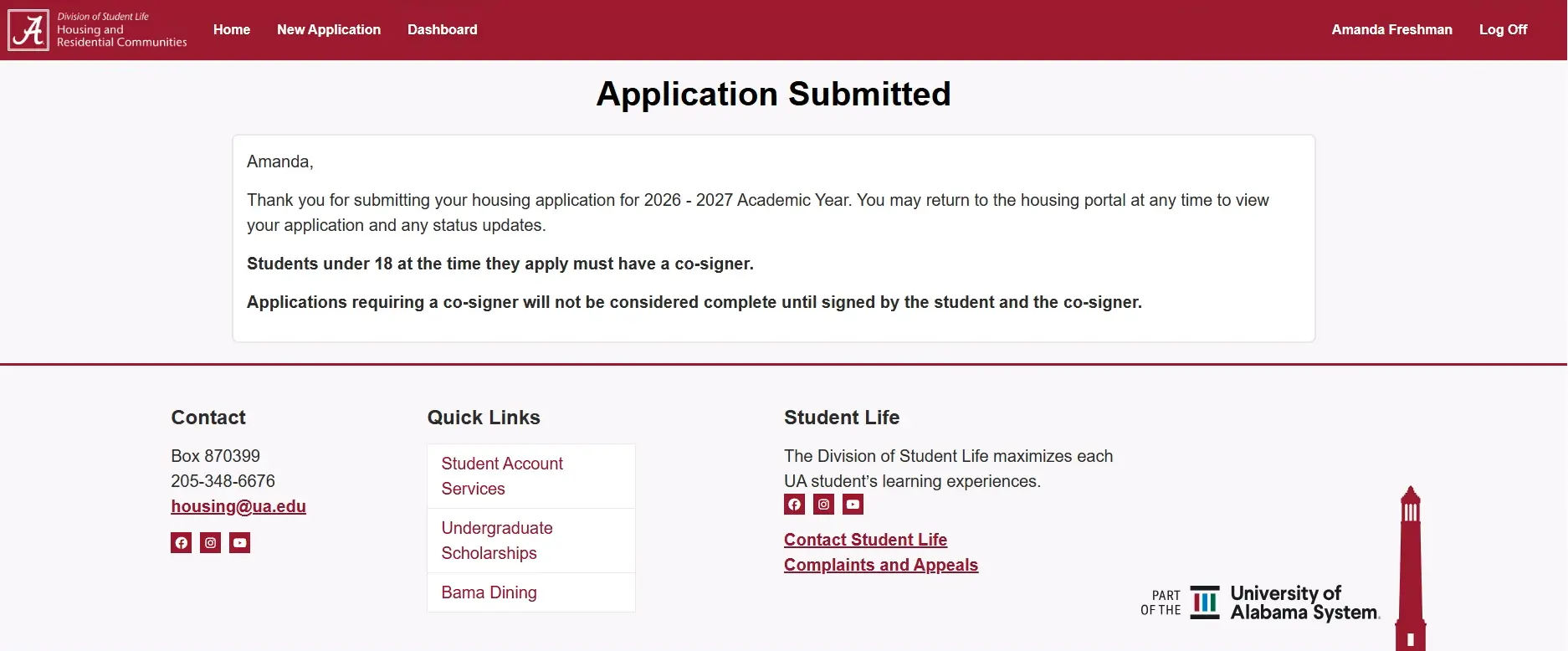 Students can log in to housingportal.ua.edu at any time to check their application status.