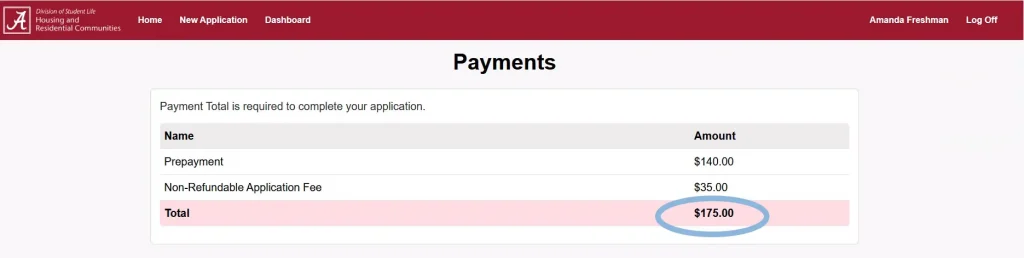 - Pay the $175 application fee ($140 prepayment and $35 non-refundable housing application fee).
